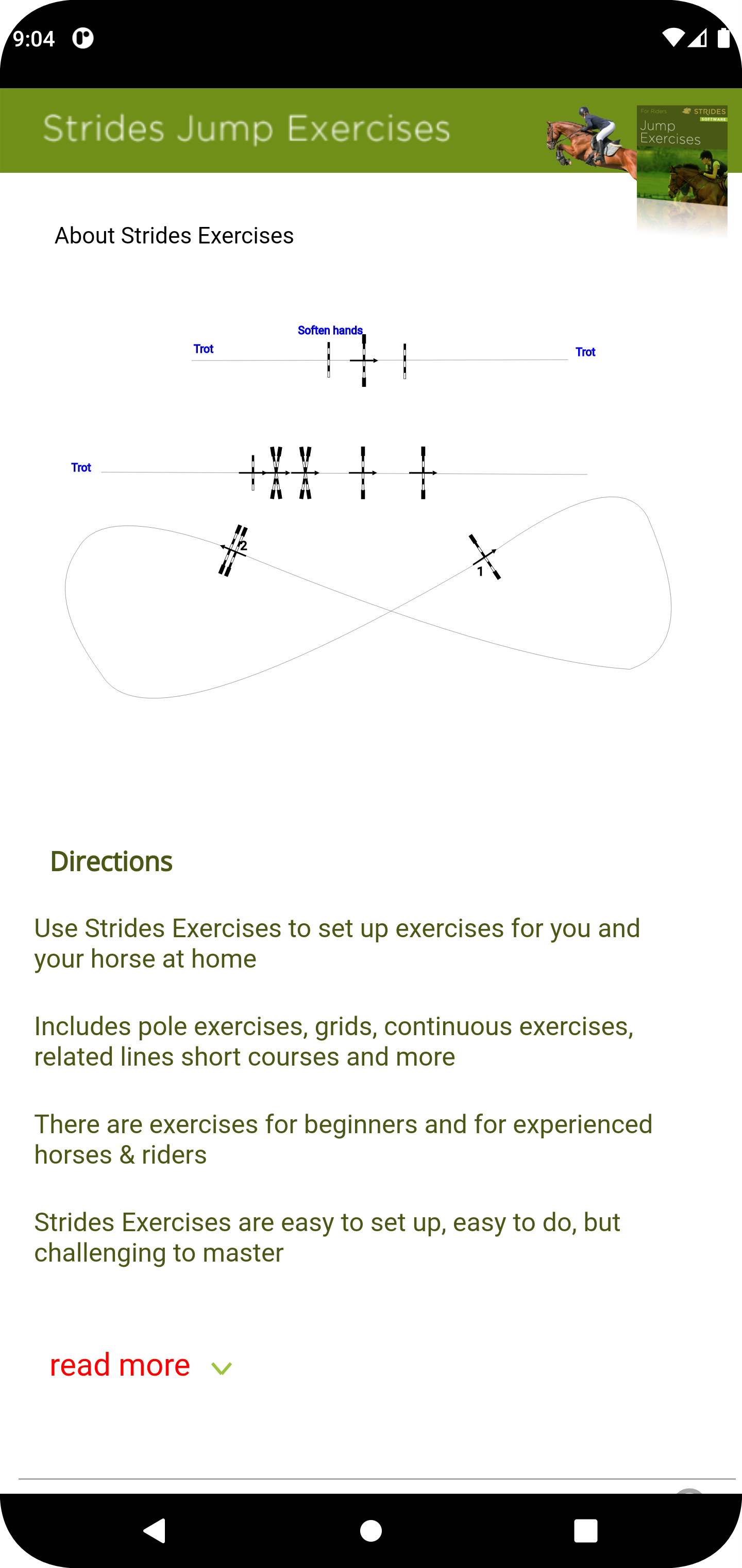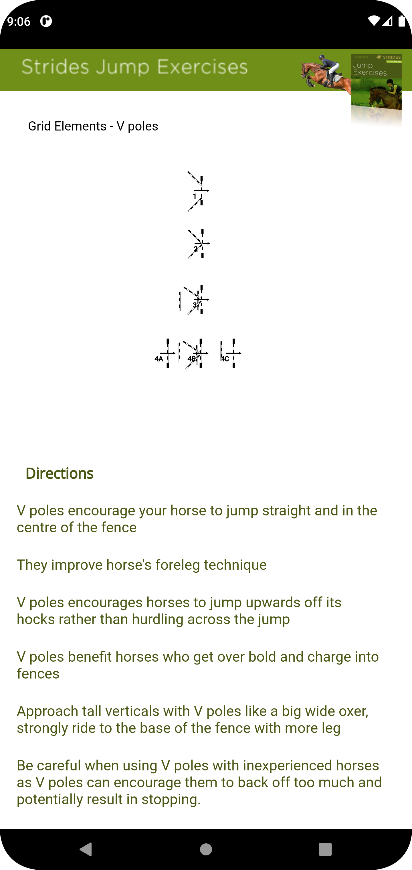 Strides Exercises contains a library of jumping exercises for training Showjumpers, eventers, hunters and all other jumping disciplines. For full access a monthly or annual subscription is required...